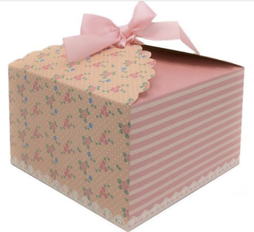 Folding Cake / Gift Box Single Pack With Flower Design And Pink Ribbon 14.5cm x 14.5cm x 9cm Approx.
